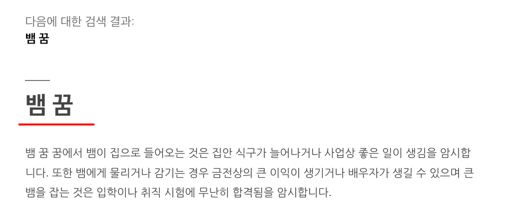 홈페이지 하단에 검색창이 있습니다. 검색란에 원하는 꿈해몽을 입력합니다. 여기에서는 뱀 꿈을 검색해 보겠습니다.