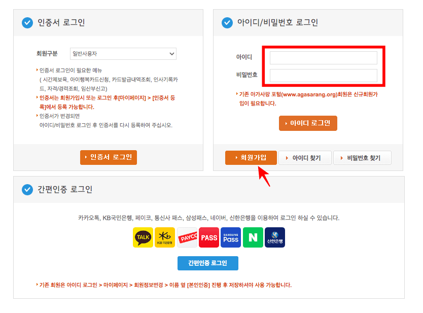 본 서비스를 이용하시려면 회원가입이나 로그인이 필요합니다. 아이디와 비밀번호를 입력하시거나 하단 회원가입 버튼을 클릭하여 회원가입을 진행합니다.