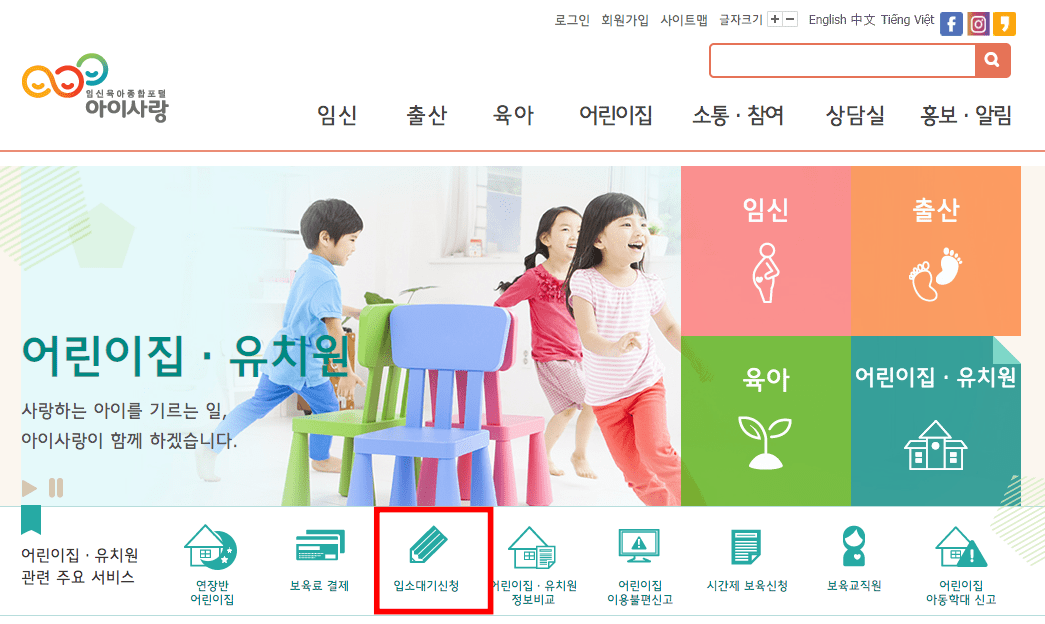 아이사랑 보육포털사이트 입소대기 등록방법