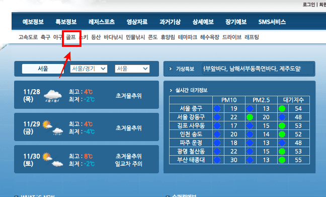 전국 골프장 날씨를 확인하는 방법은 아래 내용을 보시기 바랍니다.