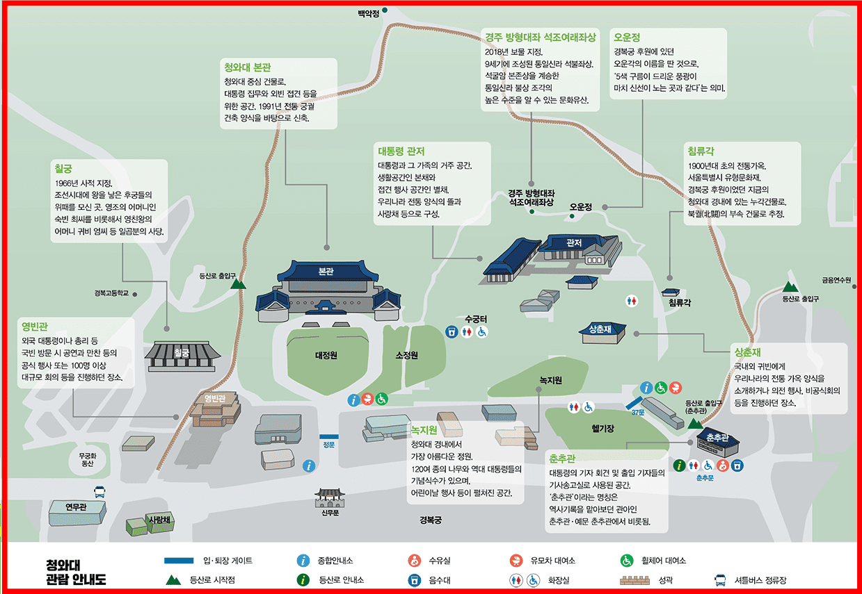 - 기타 청와대 관람이나 관리에 지장을 주는 행위 등