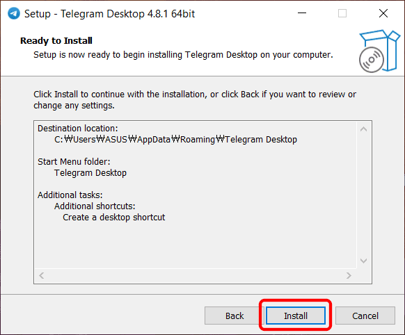 윈도 화면에 텔레그램 아이콘이 생성되길 바란다면 하단의 Next버튼을 클릭합니다.