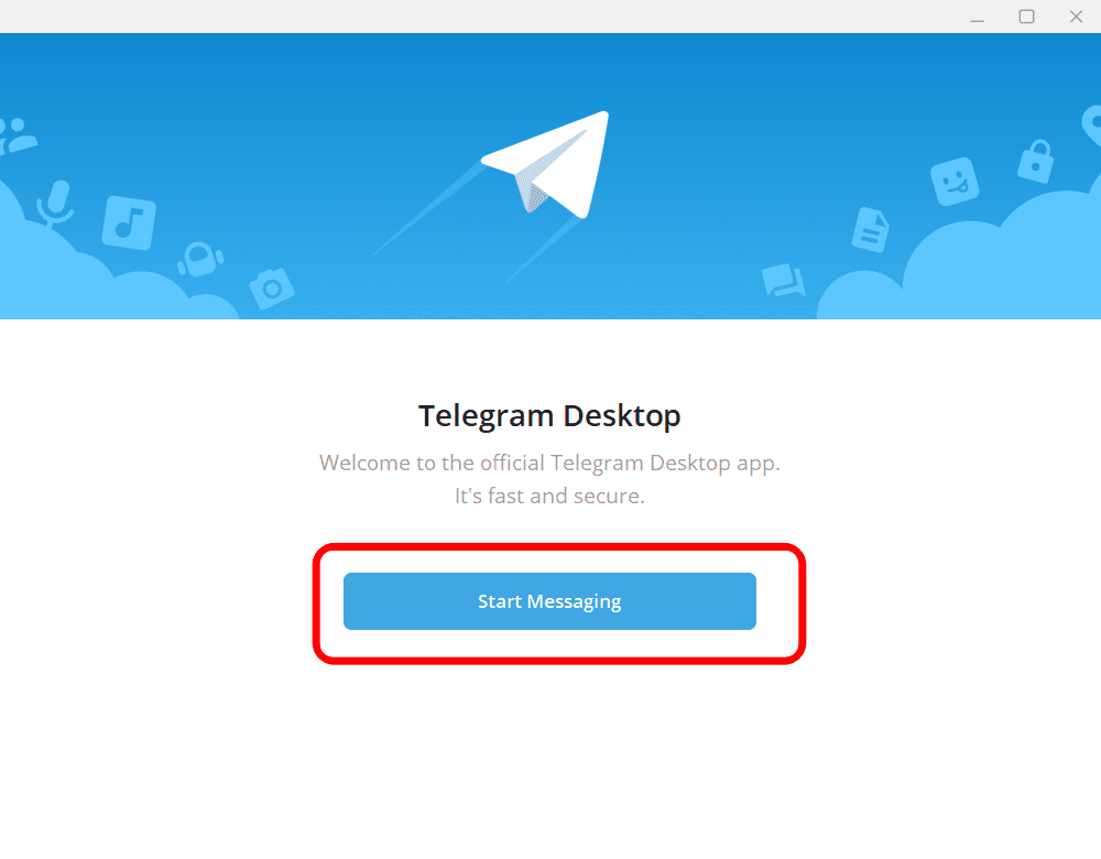 텔레그램 pc버전이 실행되면 위와 같은 화면을 볼 수 있습니다. Start Messaging 버튼을 클릭합니다.