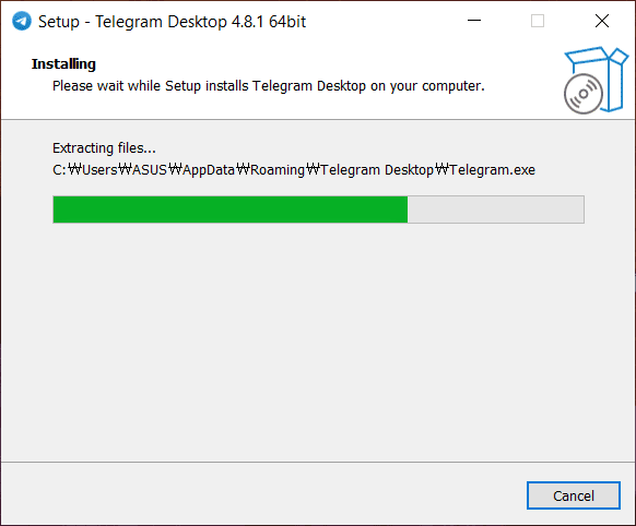 텔레그램 pc버전 설치 중 화면이 표시됩니다.