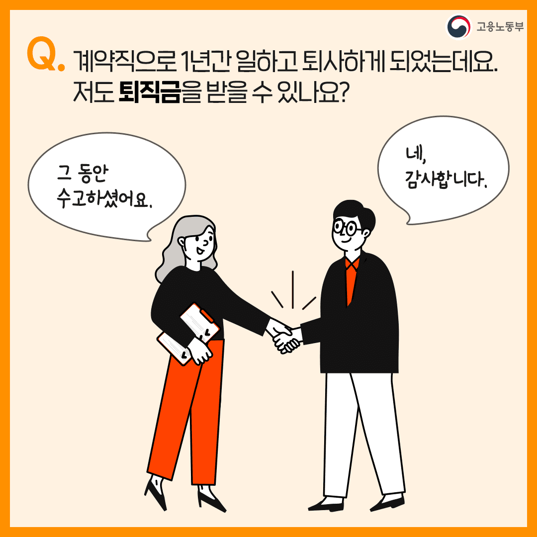 Q: 퇴직금은 1년 이상 근로하는 경우 받는다고 하는데요. 1년 이상만 근무하면 누구나 받을 수 있나요?